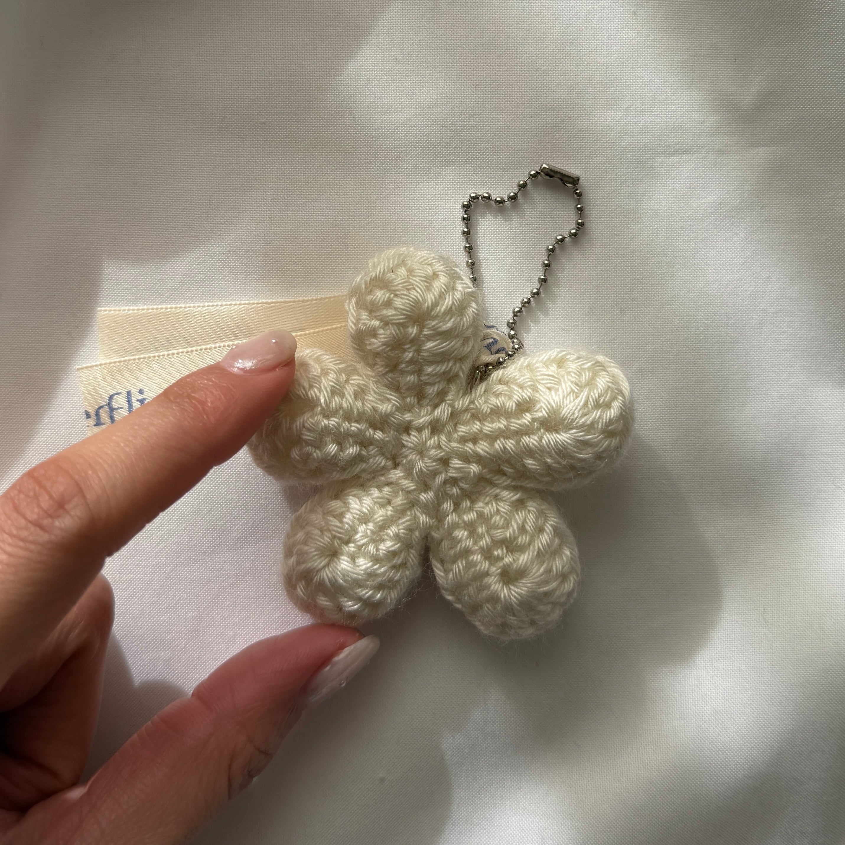 かぎ針で編んだお花のキーホルダー。